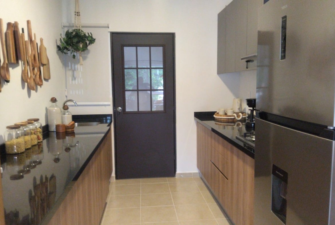 El departamento cuenta con 81.26 m² de construcción, espacios abiertos de sala y comedor, cocina equipada con acabados contemporáneos, y amplios ventanales que brindan ventilación y luz natural.